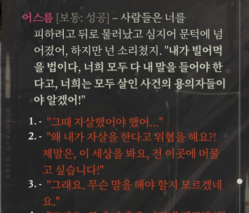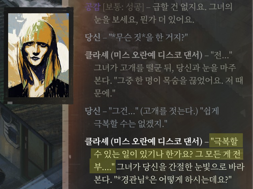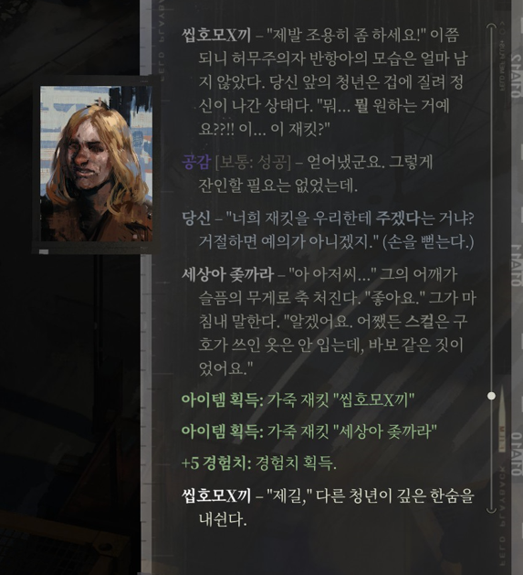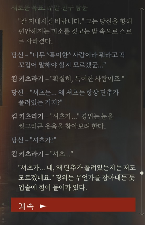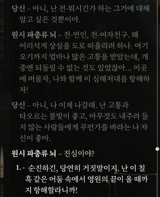 굉장히 냉소적인 질문들로 시작하지만 결국 고를수 있는 선택지에 이런 정이 담긴 선택지를 남겨줘서 좋음.